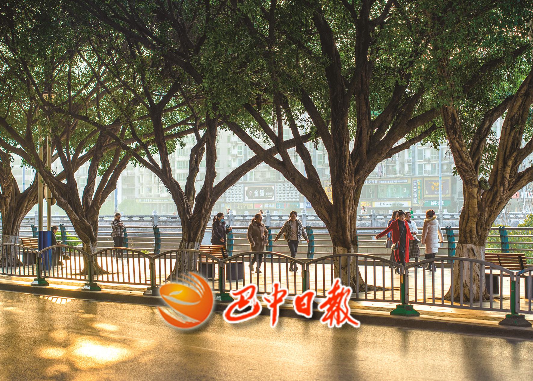 图四:3月6日,市民迎着向阳在江北滨河路散布。