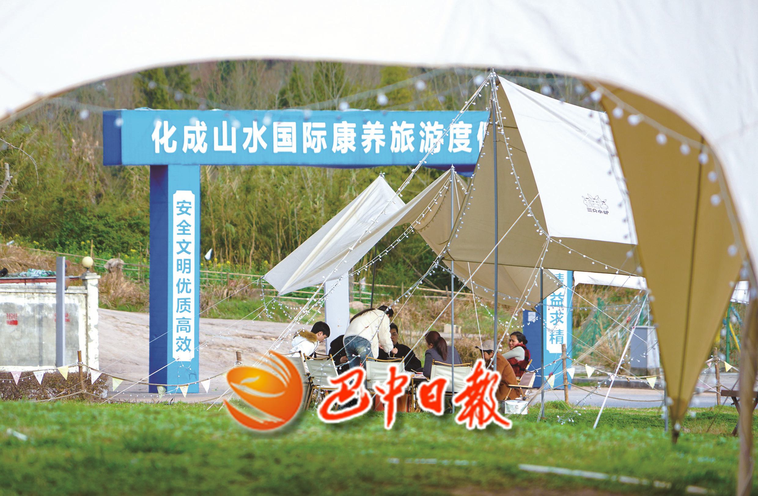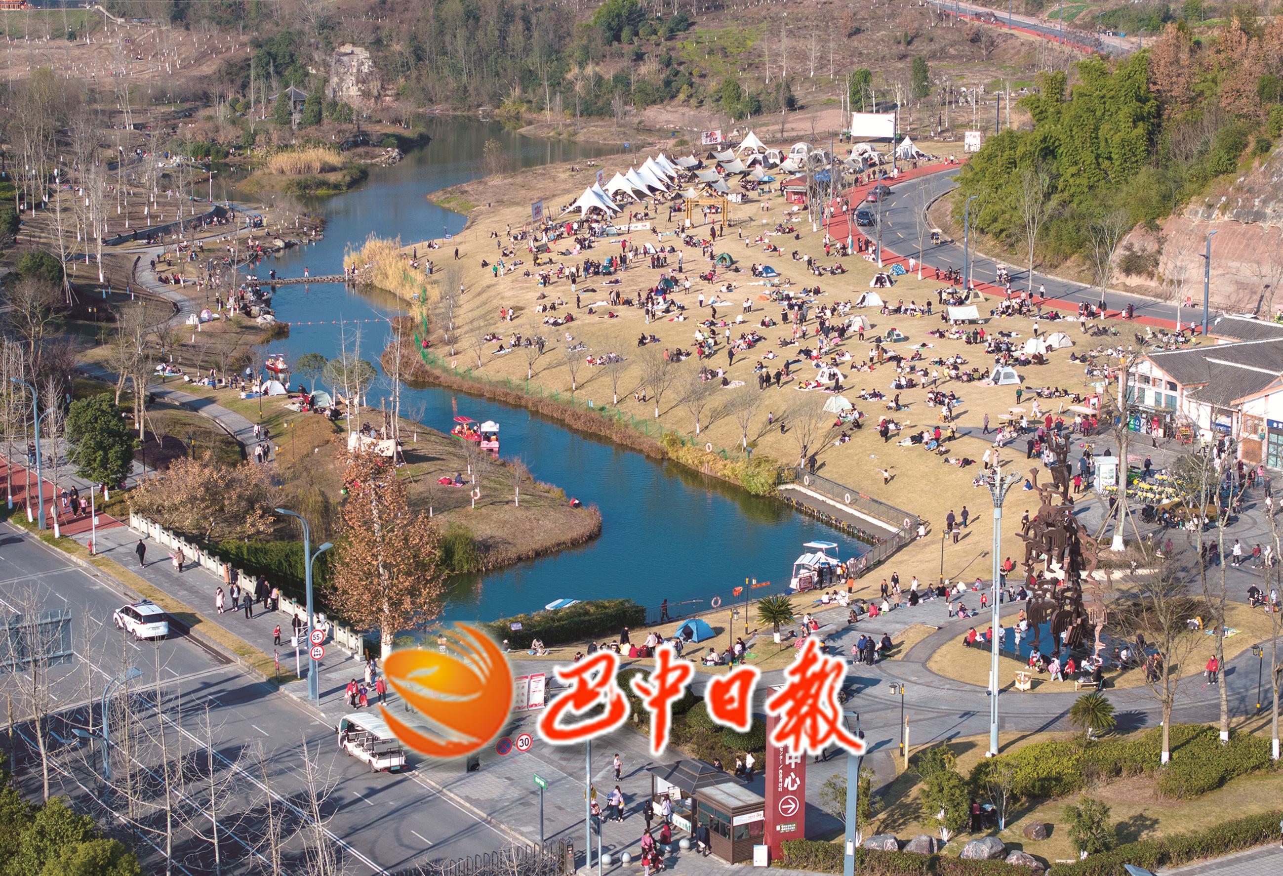 图一:3月4日,旅客在巴州区山水化湖露营地失业游玩。