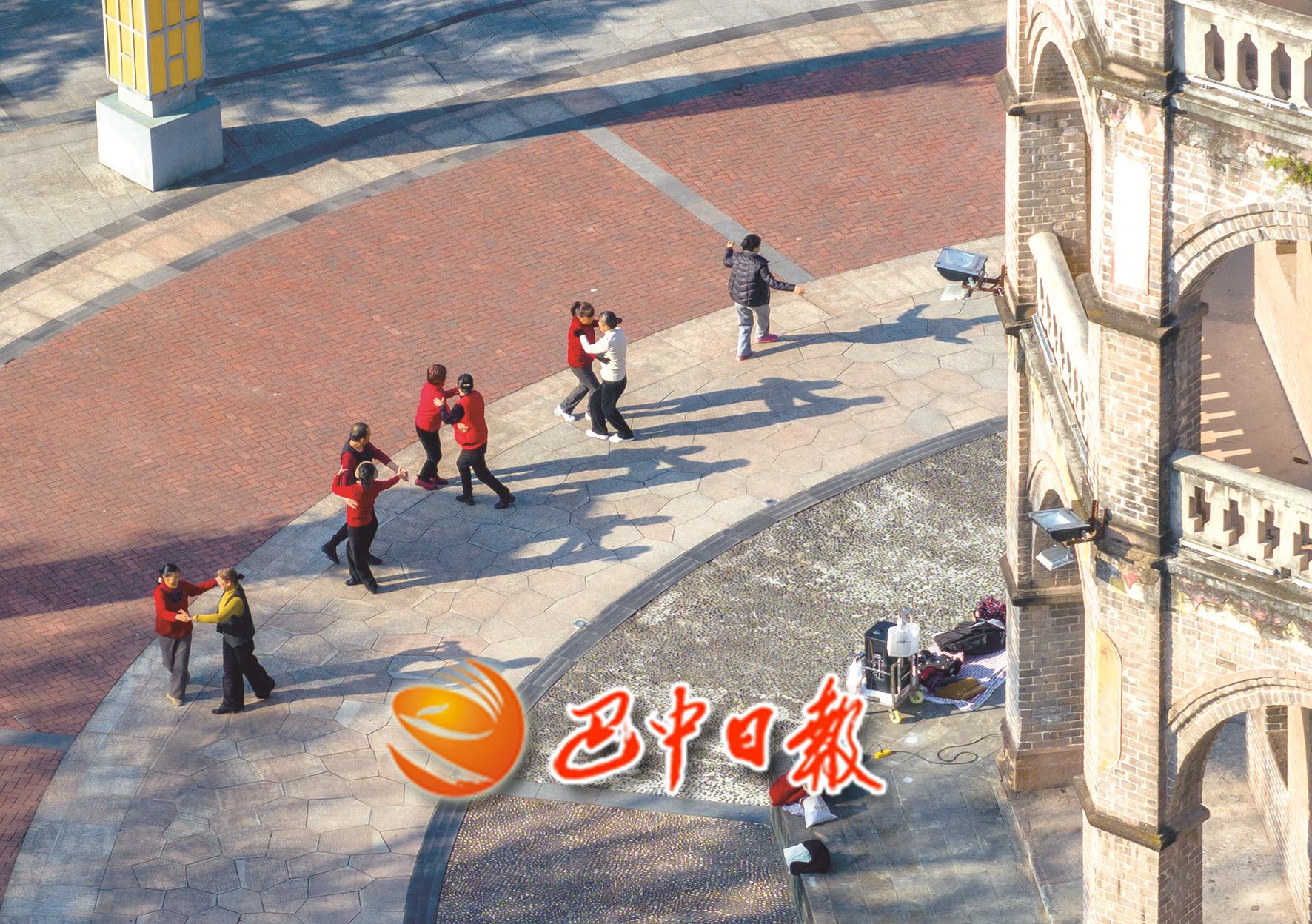 图五:3月6日,市民在巴城回风亭广场跳坝坝舞。