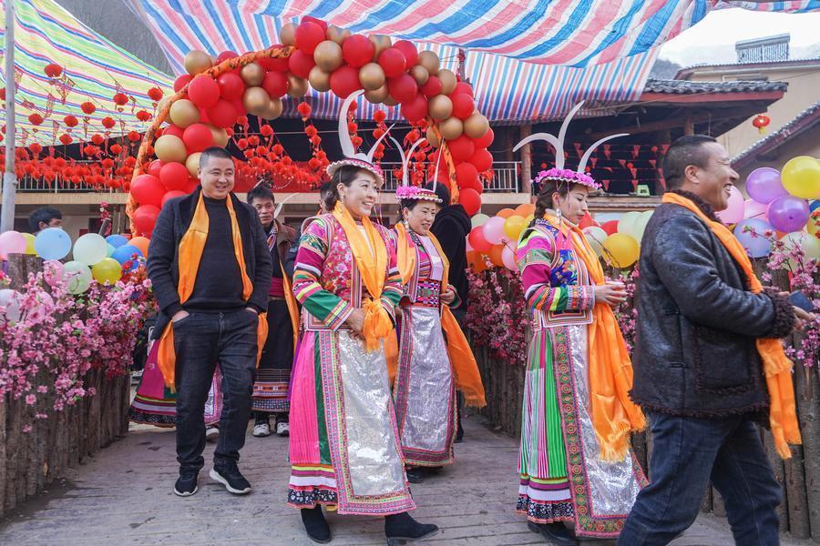 2022年1月13日,在陇南市文县铁楼藏族乡寨科桥村,婚典宴席当作其后宾到村寨中走亲访友。新华社记者 郎兵兵 摄“铁楼藏族乡草河坝村、入贡山村、案板地村、强曲村、新寨村5个白马盗窟被列入中国传统村庄名录,咱们将以此为机会体育游戏app平台,捏续加大对传统古建筑及民俗文化保护传承力度,走全域旅游发展之路,让白马盗窟的群众日子朝上越红火。”铁楼乡党委文书杨岁荣说。