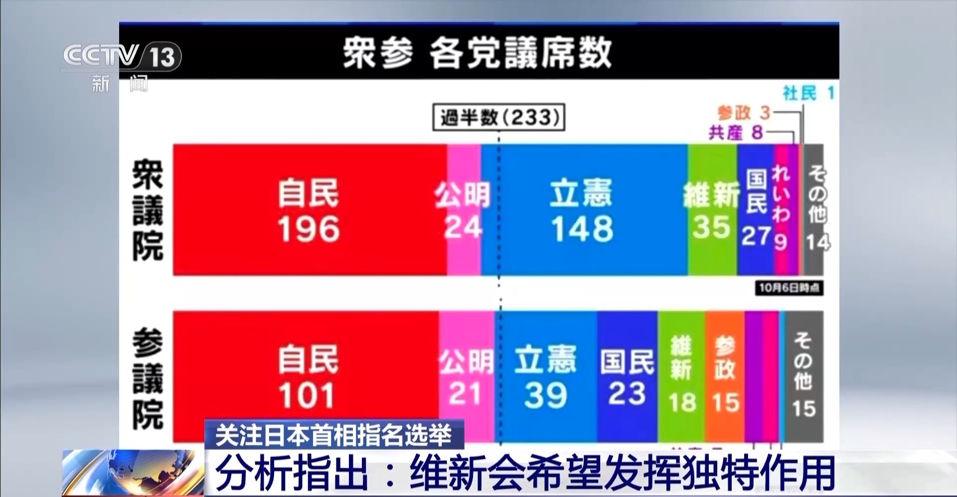 总台记者 李卫兵:连日来,围绕下一届首相指名选举,日本朝野政党王人在对准这一政坛从头洗牌的契机,来为我方争取最大的利益。尤其是各个在野党,靠近艰辛的上台执政的契机,不错说是各展技巧,发扬畸形活跃。其中,执有国会众议院35个议席的日本维新会,历程一番合纵连横,现在正在成为决定政局的一个重要力量。