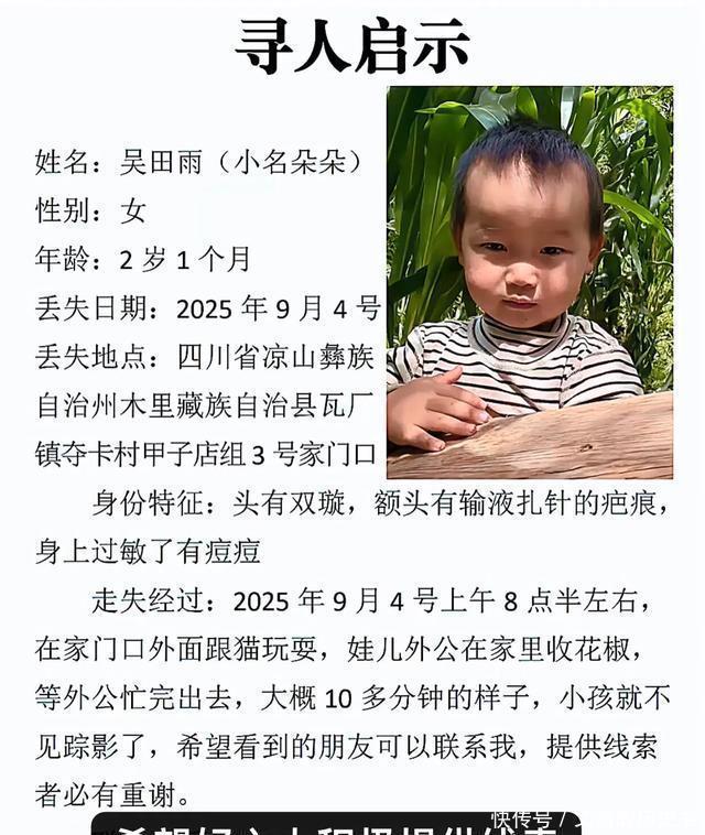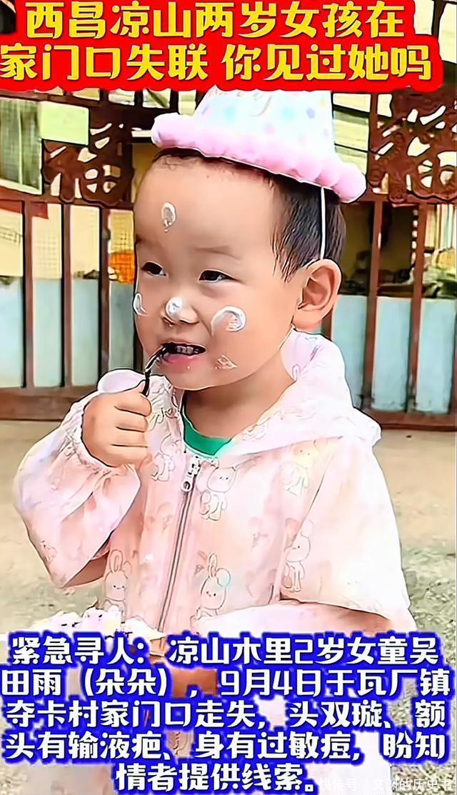近日体育游戏app平台,四川凉山木里县别称2岁女童吴田雨,奶名“朵朵”,在自家门口玩耍时失慎走失。       现在,这名2岁的女童,走失依然进入了5天,时候也依然超过了120个小时,当地的广宽搜救东谈主员,仍在弥留地搜寻当中,但是令东谈主缺憾,于今未果。此时,这名年仅2岁的女童,究竟能跑去那边? 据这名女童吴田雨的家属,在交代媒体平台发布的“寻东谈主缘起”,不错了解到:       “年仅2岁的吴田雨,在走失机的体貌特征:       头有双个旋,额头有输液扎针的疤痕,身上有过敏时留住的痘痘。       在女童走失确本日上昼8点半操纵,其在外公外婆家,木里县瓦厂镇夺卡村甲子店组3号的家门口外面,跟酷爱的猫咪玩耍,她的外公则在家内部忙着收花椒,等他收完花椒出来,时候阻隔也就粗略10分钟操纵,孩子就不见了踪影,于今不知所终。