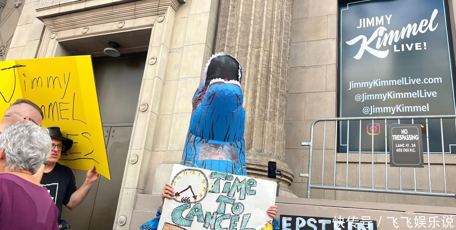 抗议吉米·坎摩尔重返节观念 YouTuber 佩里·卡拉维洛 (Perry Caravello) 在周二录制前在演播室外告诉 CNBC:“他应该再停播一周以至一个月,好好思思他说了什么。”