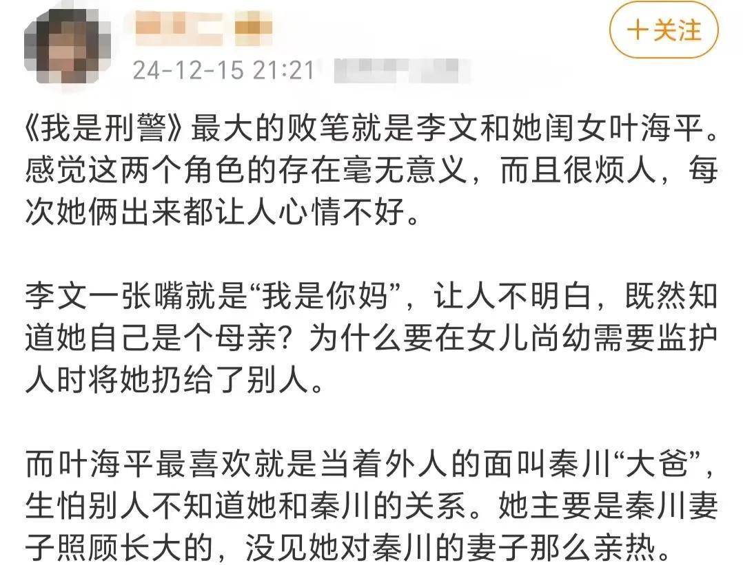 《我是刑警》除了群演外,一共有231名演员参演,也便是说剧中知名字的脚色有231位。在这231位脚色中,李文和叶海平,尤其是叶茂生放弃后的李文和叶海平,成了不雅众们吐槽和月旦的焦点。