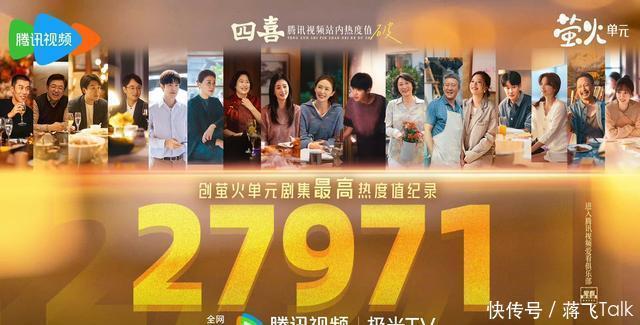 二、腾讯视频《四喜》 童瑶、蒋欣、黄明昊、许娣、林晓杰、侯岩松、岳红、付辛博、王菊、黄澄澄、宣言、马旭东主演的践诺主义家庭伦理剧。 被誉收视黑马的《四喜》热度真的杀疯了!收视领跑+云合屠榜,剧情信得过接地气,不靠狗血冲突博眼球,细节充满东说念主间烟火气。开播仅37分钟CCTV8及时收视率突破3%,峰值达3.1515%,创史上最快破3剧集记录,位列全台历史第二。腾讯站内热度峰值达27971,登顶腾讯电视剧热搜榜、家庭剧TOP1。