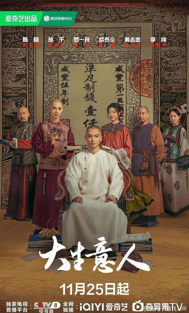 三、爱奇艺《大生意东说念主》 陈晓、孙千、罗一舟、成泰燊、黄志忠、李纯、朱亚文、向涵之、吴樾、柯蓝、梁冠华主演的古装别传剧。 谁说商战剧只可拍“当代”?《大生意东说念主》剧组用4年工夫打磨的脚本和清末交易体系,横跨黑龙江、内蒙古、山西、安徽、浙江5省实景拍摄,从陈晓上演的古平原科举遭毁坏,充军宁古塔,死里逃生干预商海,到成为私盐估客逆袭成一代商王,剧情跌宕升沉,让东说念主越看越上面。 自2025年11月25日开播,CCTV8及时收视率峰值达3.4803%,衔接多日稳居寰宇卫视榜首。爱奇艺站内当今破8100+,猫眼热度达8635.05,登顶猫眼电视剧热度榜TOP1。