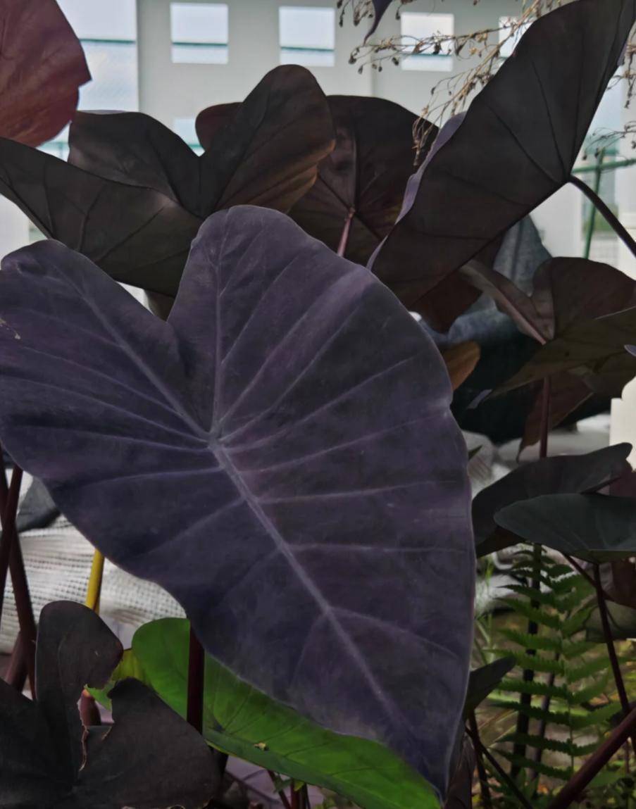 近日,一位男网友晒披缁门口的象耳芋,其叶子呈神秘紫色,在阳光下空闲丝绒光泽,视觉冲击力极强。